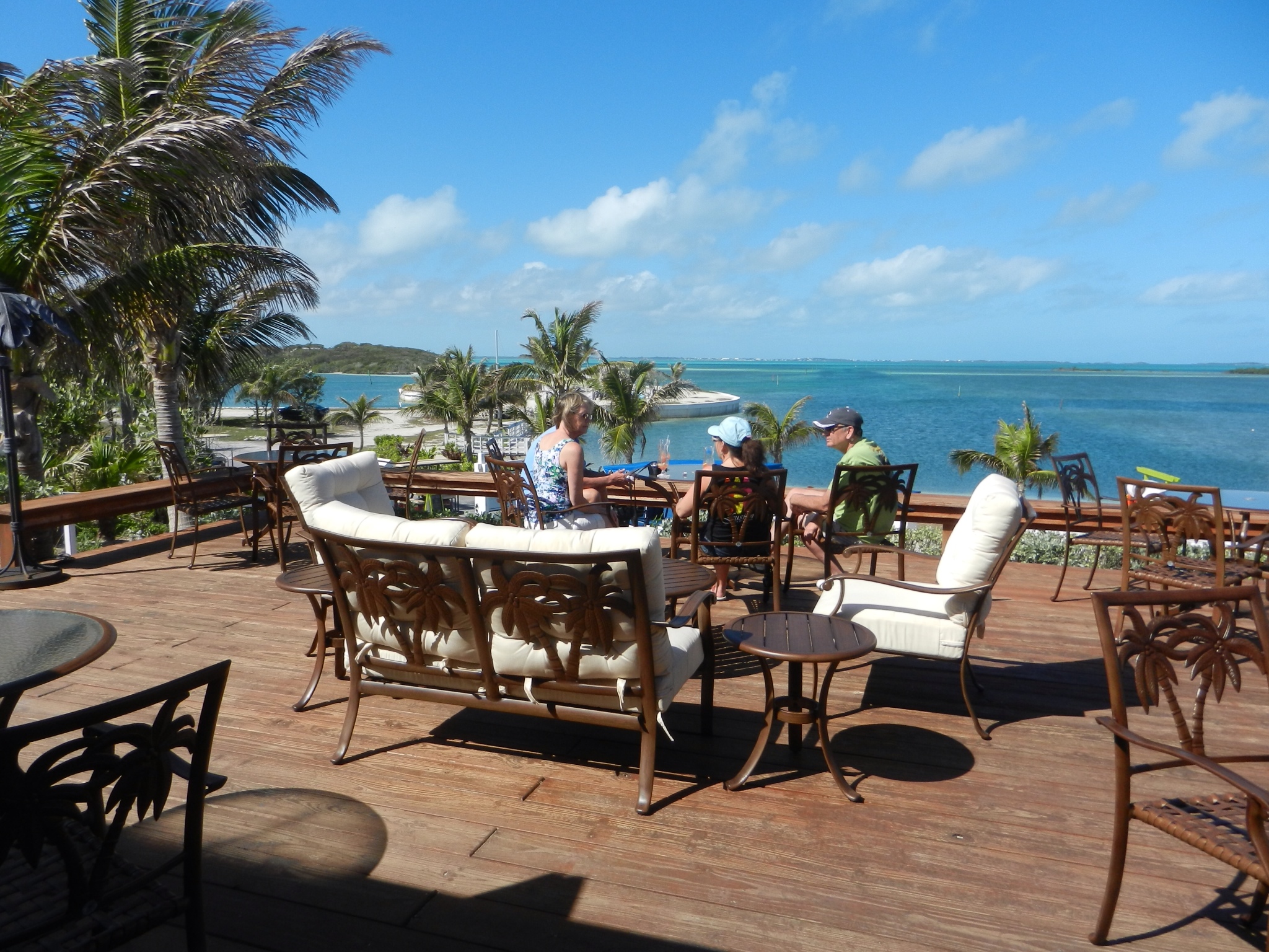 From just about anywhere you could see the Atlantic Ocean to the east and the Sea of Abaco to the west. This is a really special feature at the Abaco Inn. The Inn stretches out for about a quarter of a mile. There is a main building with the office and gift shop, bar and restaurant. And there's a nice outdoor sitting area on the Sea of Abaco side by the bar.