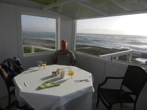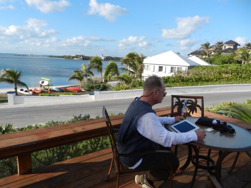 Thursday morning we had to say so long to the Abaco Inn and all the wonderful staff members we had come to know and enjoy. We savored our last breakfast…..eggs benedict with lobster and bacon for me, oatmeal and fruit for Stephen.