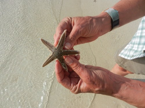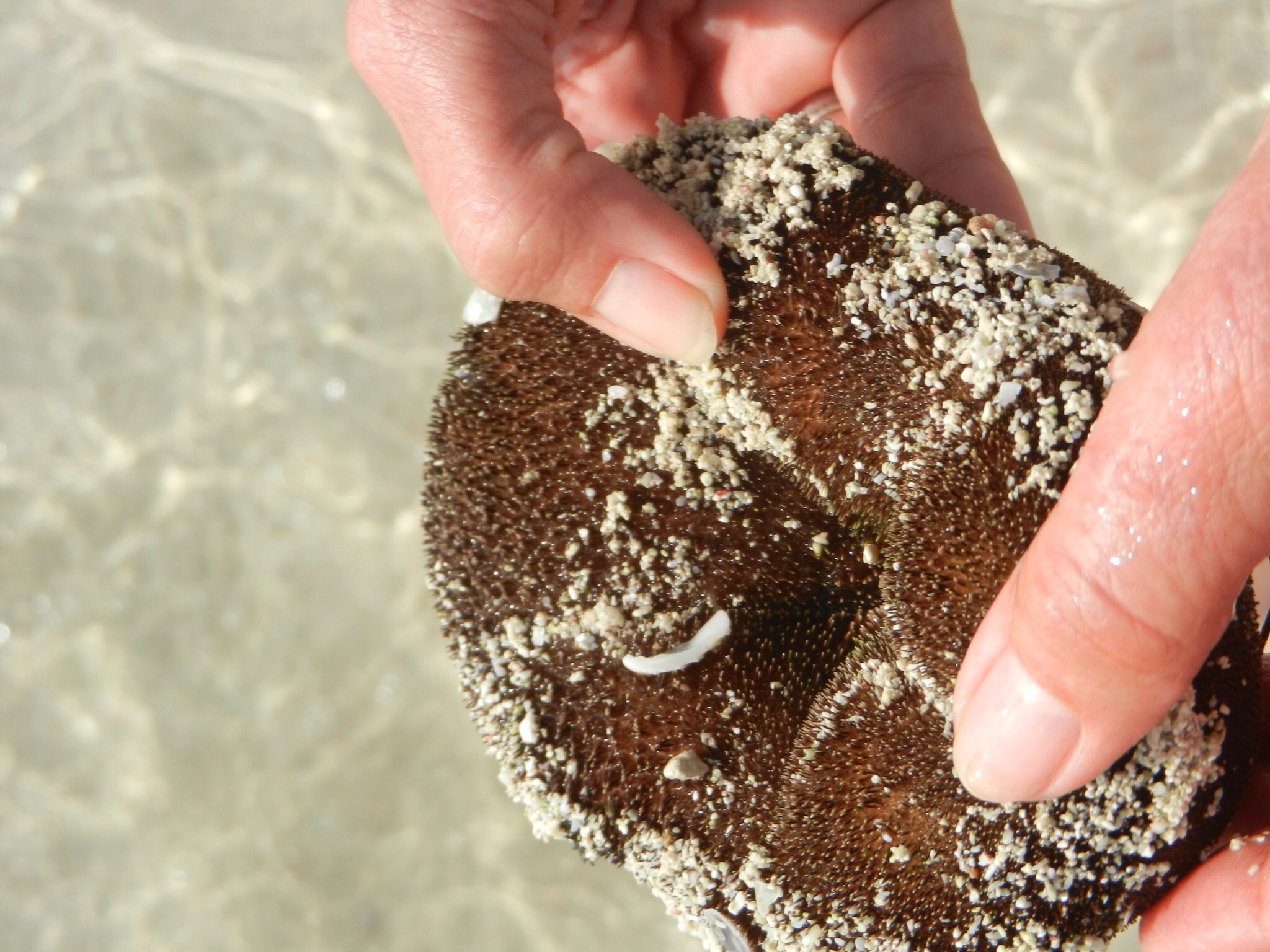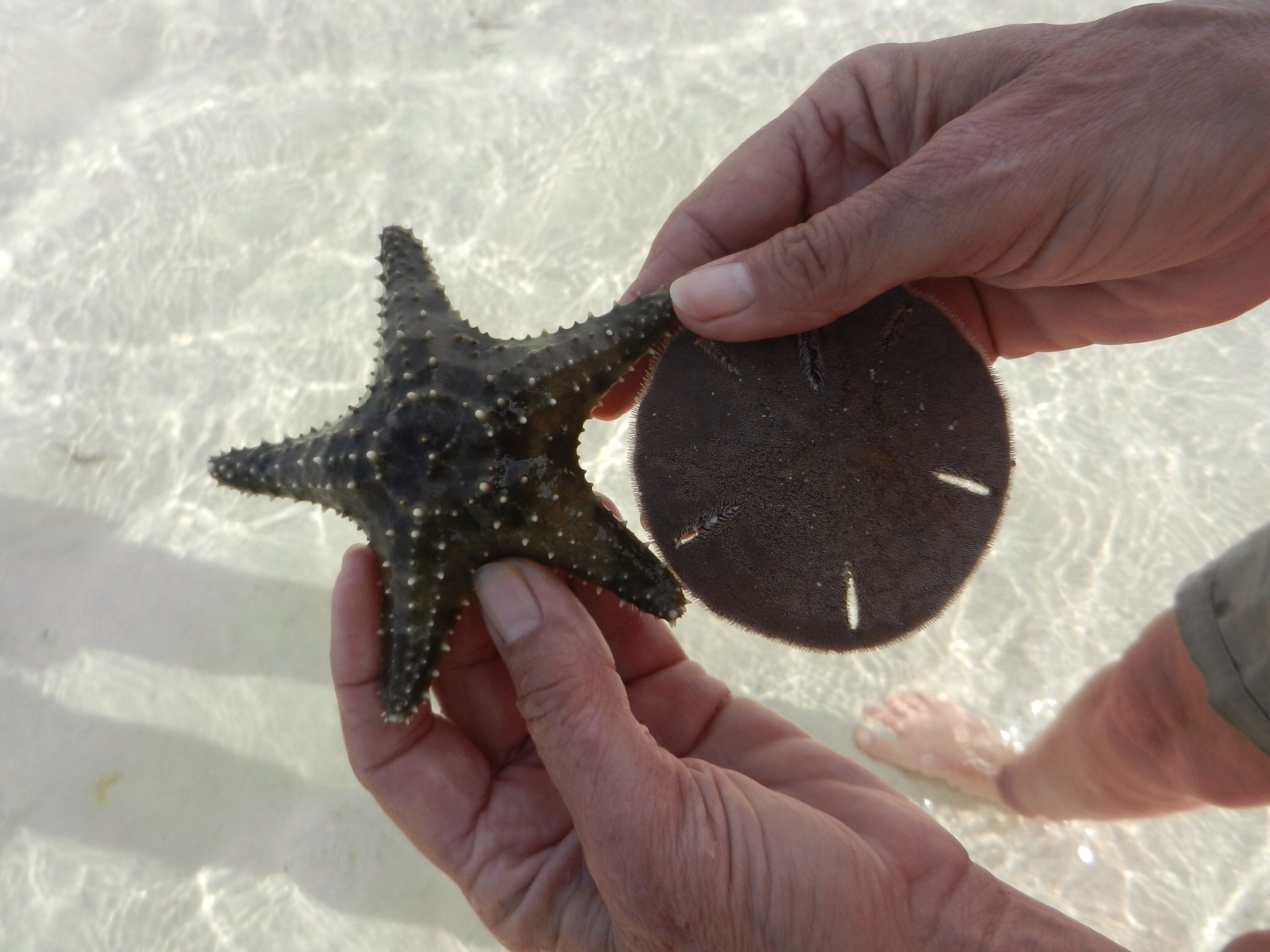 I’ve never seen a live sea biscuit before! I have a petrified one that we found near Glen Rose. I suppose it’s a dinosauric sea biscuit! The cave looks pretty cool, too! Ah, the color of that water…….. You guys keep having fun during your hopefully peaceful journey!