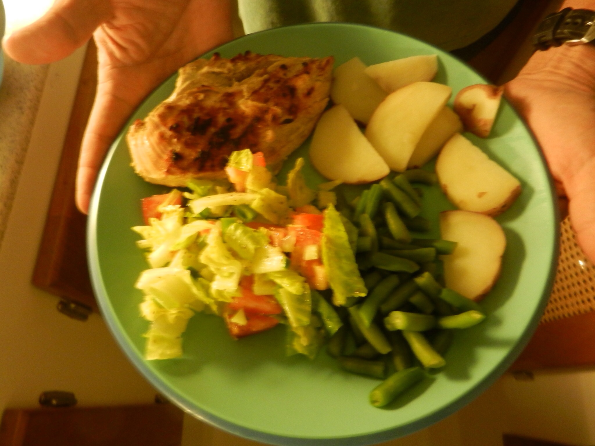 For dinner we had grilled chicken, green beans, potatoes and salad.