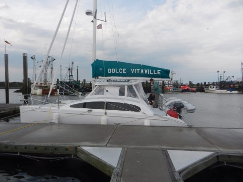 After breakfast Ralph and Alene went to work fixing things on the boat, We called Dick to report the problems with the auto pilot. He said he would order a new one and have it shopped to Cape May, our next destination. Ralph installed the paper towel and towel holders that we had bought in our shopping journeys as well as the TP holder in the bathroom.