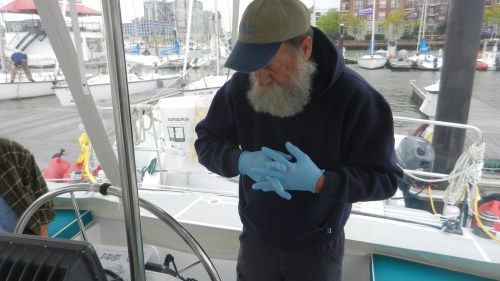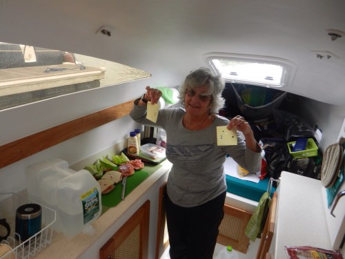 The following morning we worked hard on our blog. Ralph looked at the charts and plotted our next passage to Cape May, New Jersey. For breakfast we had cream of wheat and toasted English muffins.