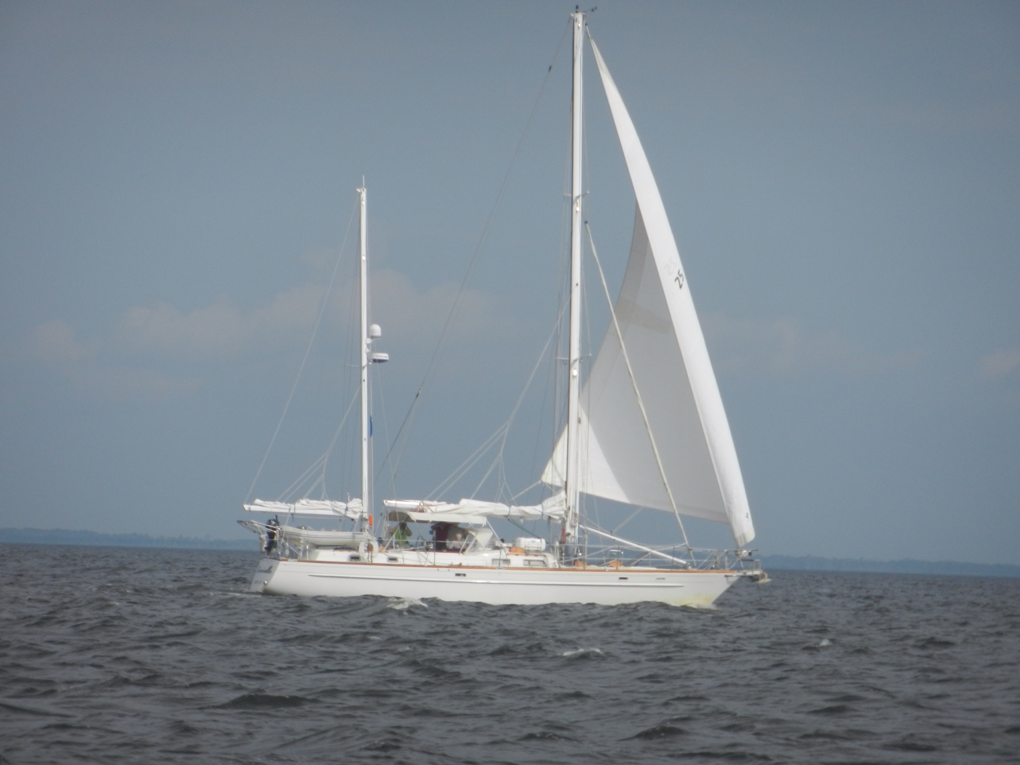 It was a bumpy ride across Albemarle Sound. We saw several sailboats along the way. This one's a ketch which means that it has two masts. The rear mast, called a mizzen mast, is forward of the rudder post and shorter than main mast.