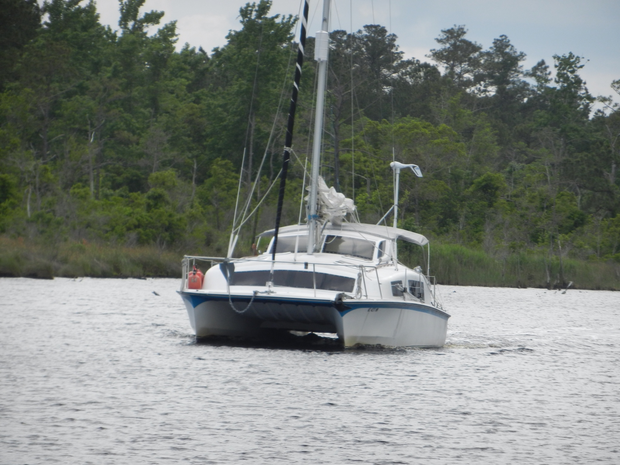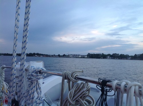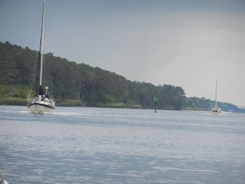 On Monday, May 20, we left Coinjock at 5:30 a.m. We put the screecher and bowsprit back on.