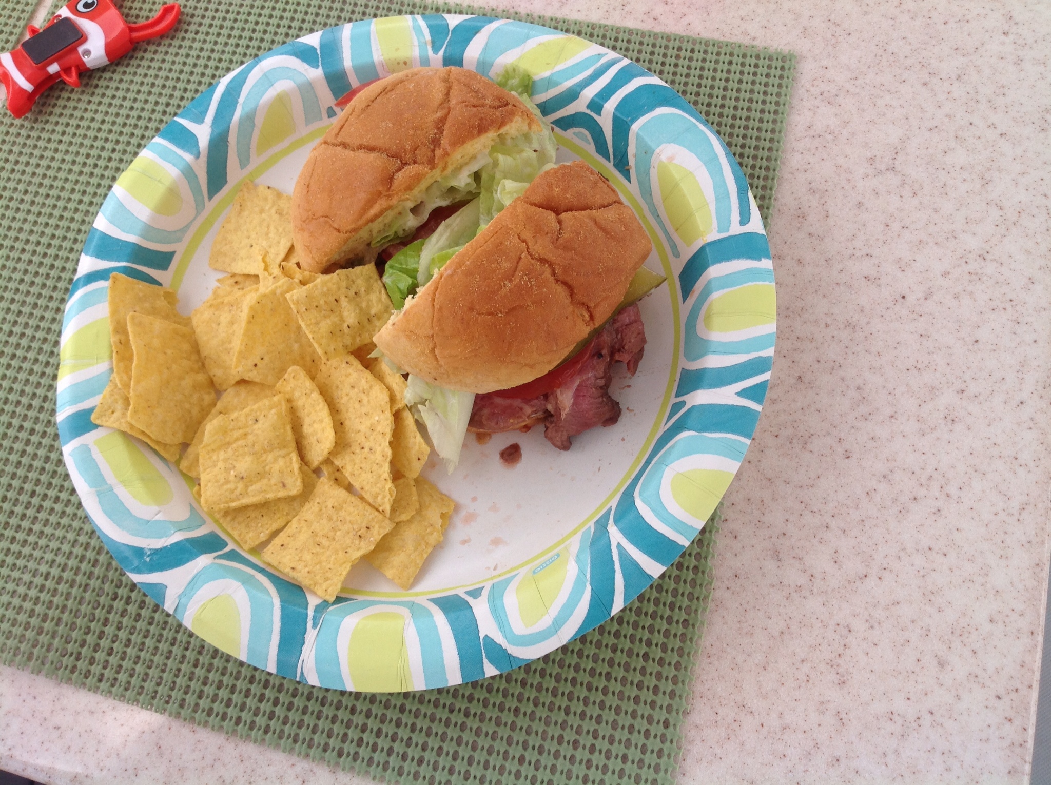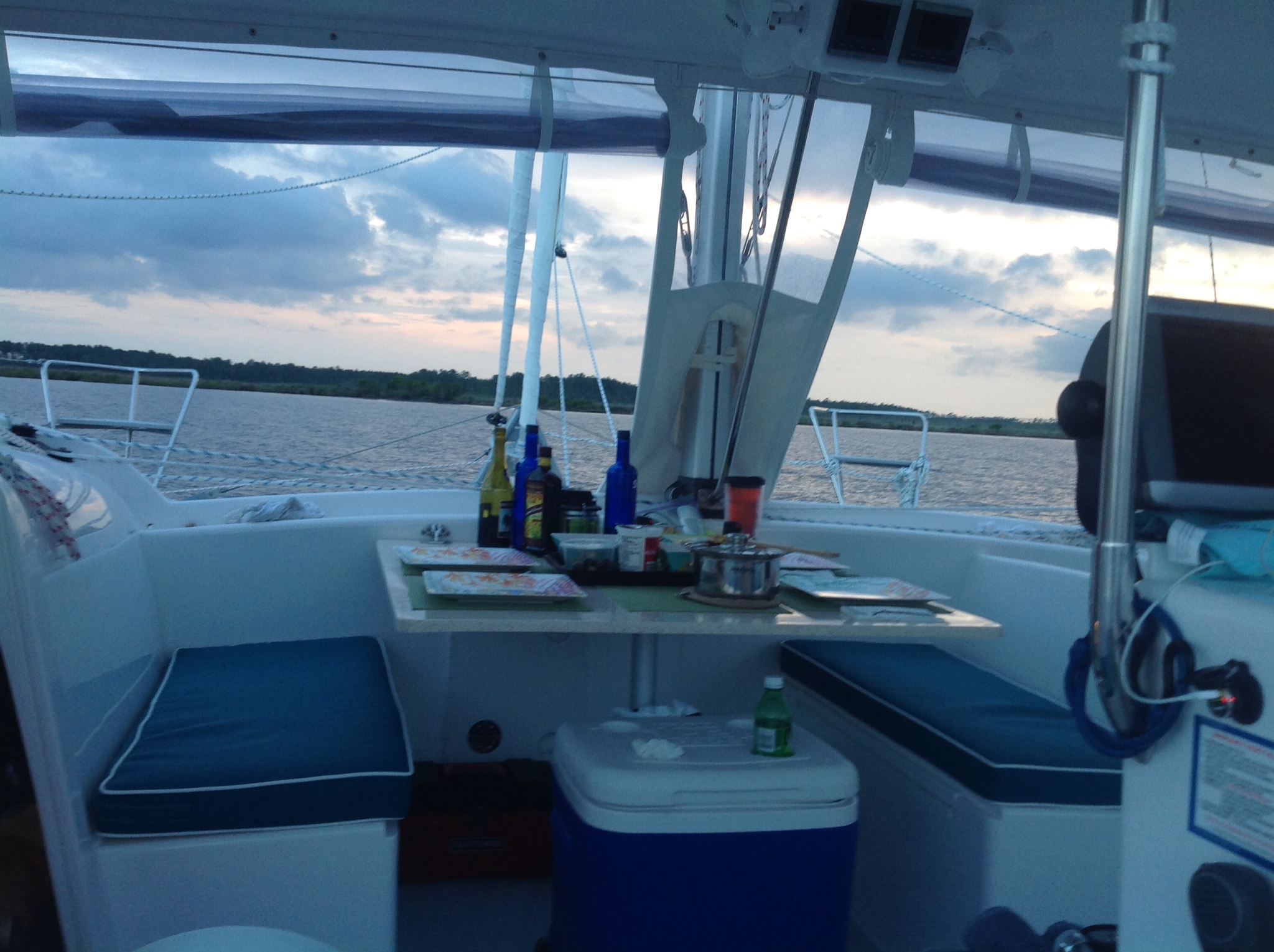 We had prime rib sandwiches for lunch. There was a jet plane buzzing around us making lots of noise. Soon the quiet sound of naps took over. The captain drove on through the Alligator River.