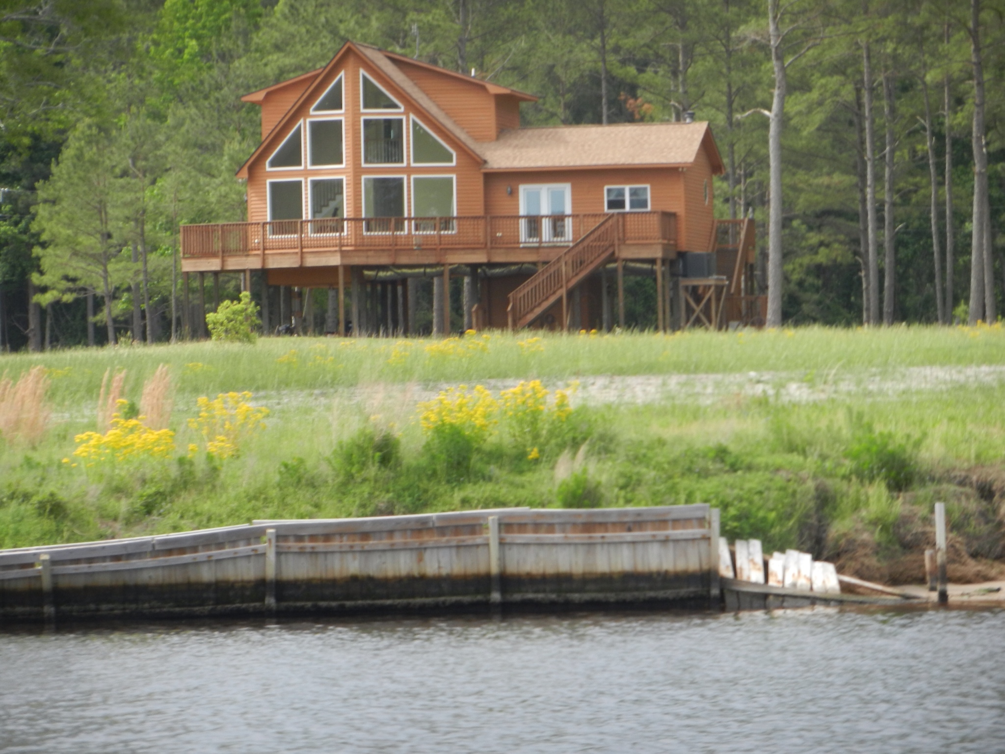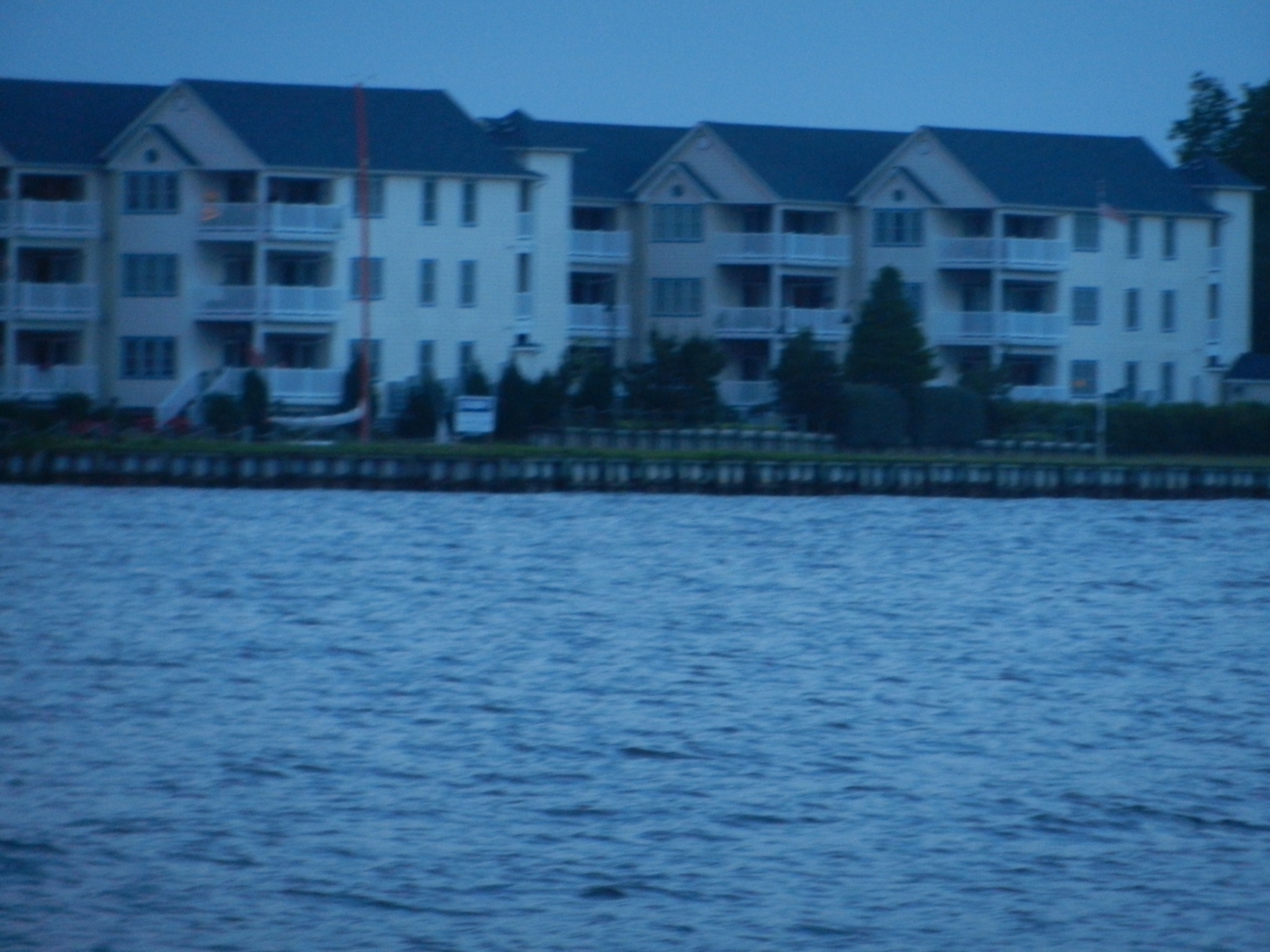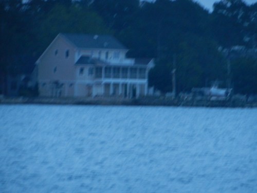 By 6:30 that evening we were anchored in a lovely spot. We had been 88 miles that day. We were the only boat around.. On one shore we could see some private homes, One of them was over a hundred years old and had been a plantation before the civil war. We're not In the north anymore. Ralph and Arlene said that at one time it was a very cool restaurant. There were also new condominiums and numerous other private homes.
