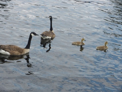 We took pictures of Canadian geese families. Mom and Dad watch over the young ones together. Very sweet.