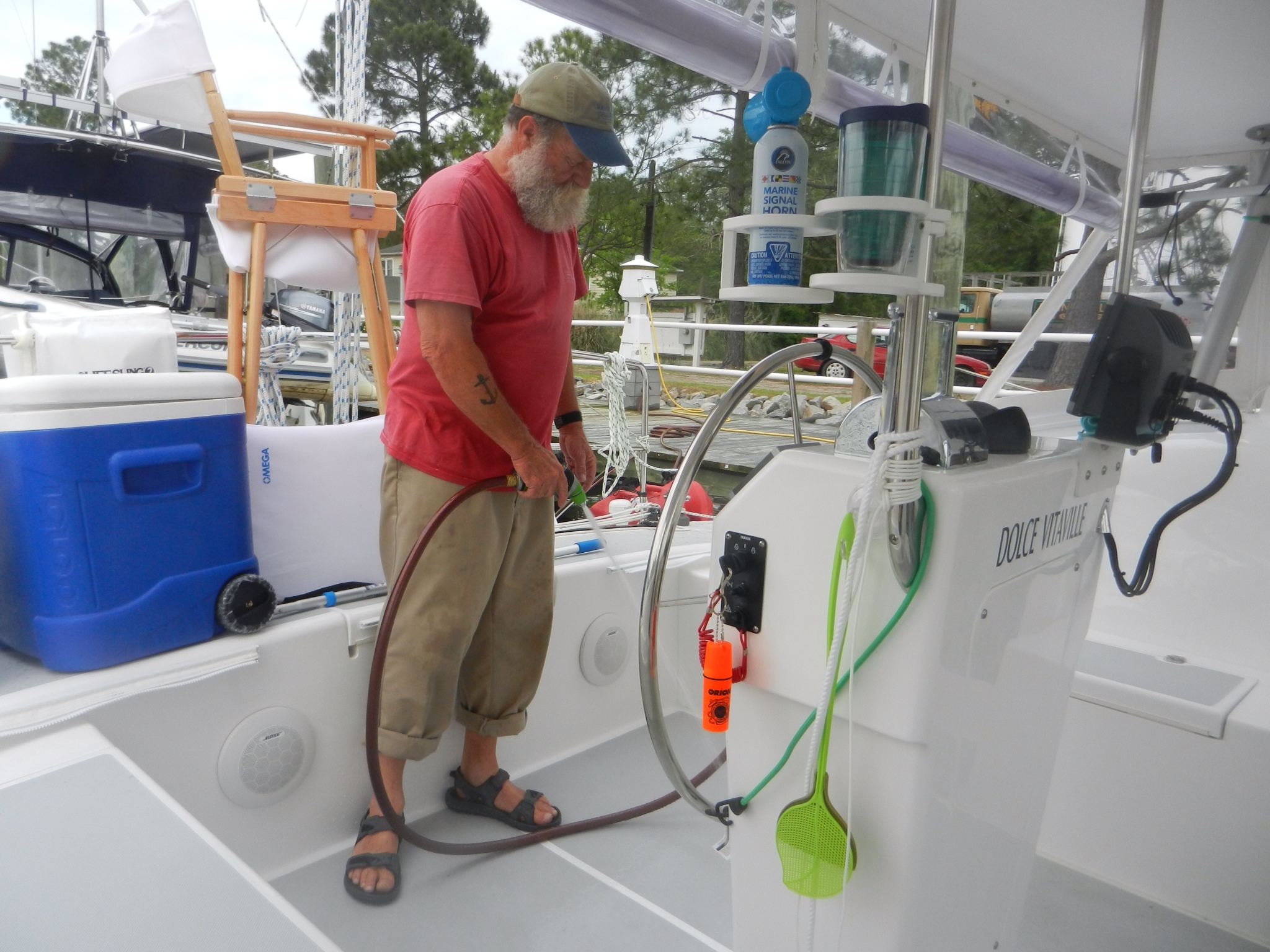 We were able to get rid of trash, clean the boat, top off the water, take showers and buy ice.