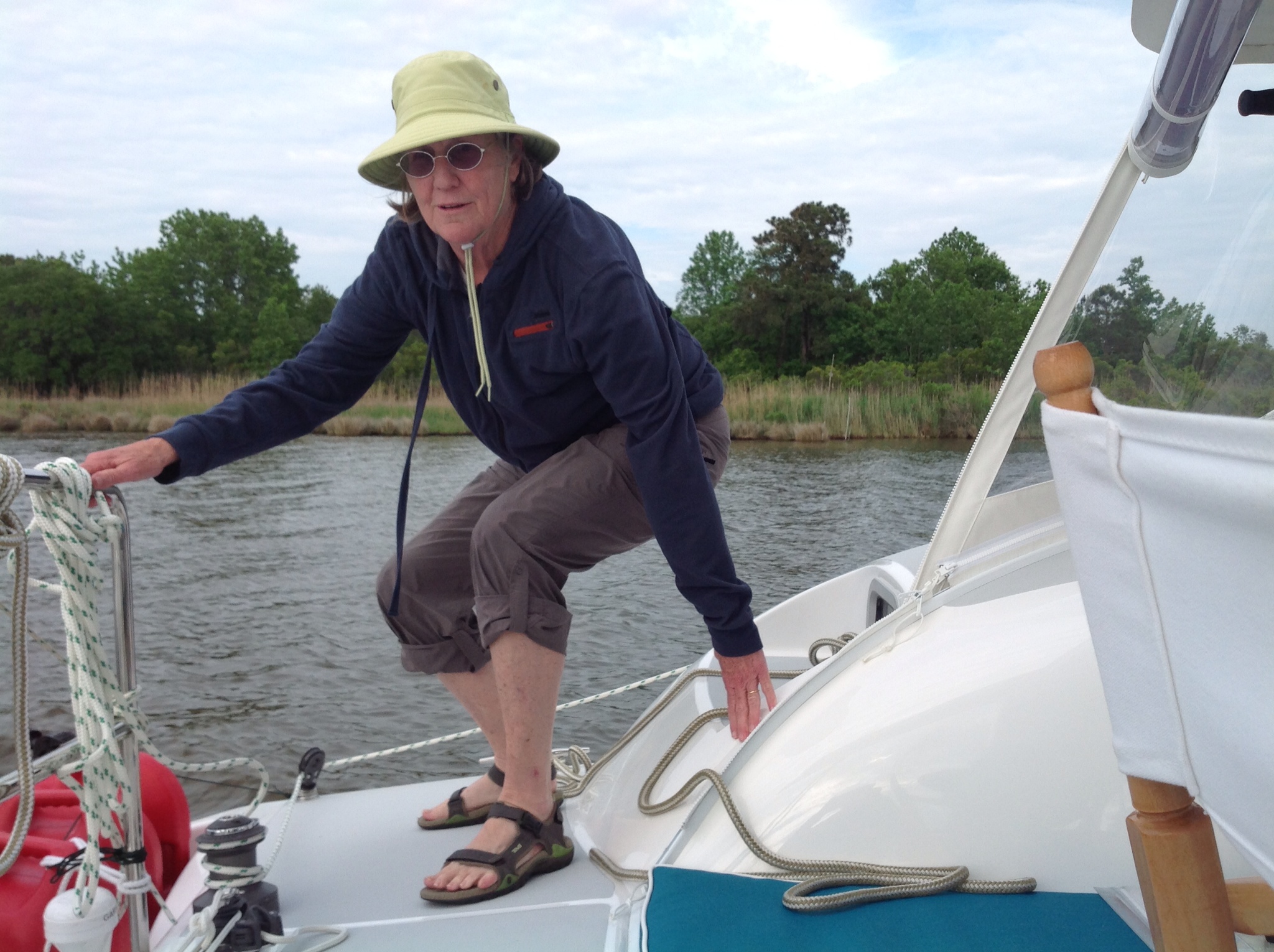 Franci enjoyed her time at the helm. The canal is narrow with trees and bad stuff on either side so it is important to stay right in middle. Driving with sharp attention to the depth gauge helps as does looking back at the wake occasionally.