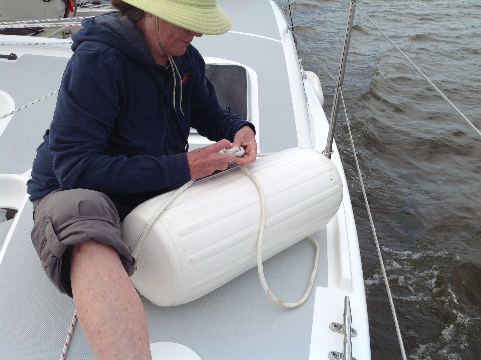 Franci helps get the fenders and dock lines ready.