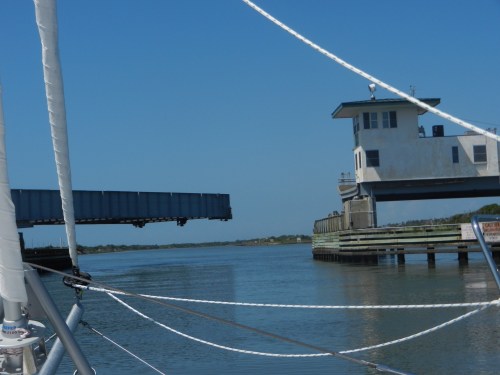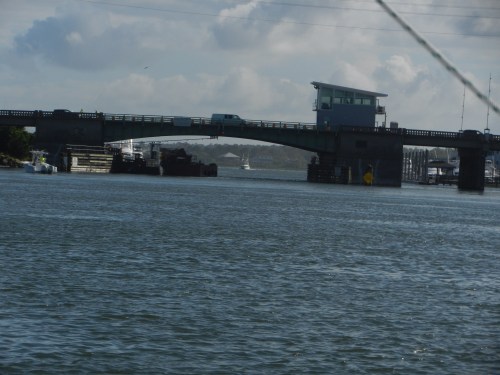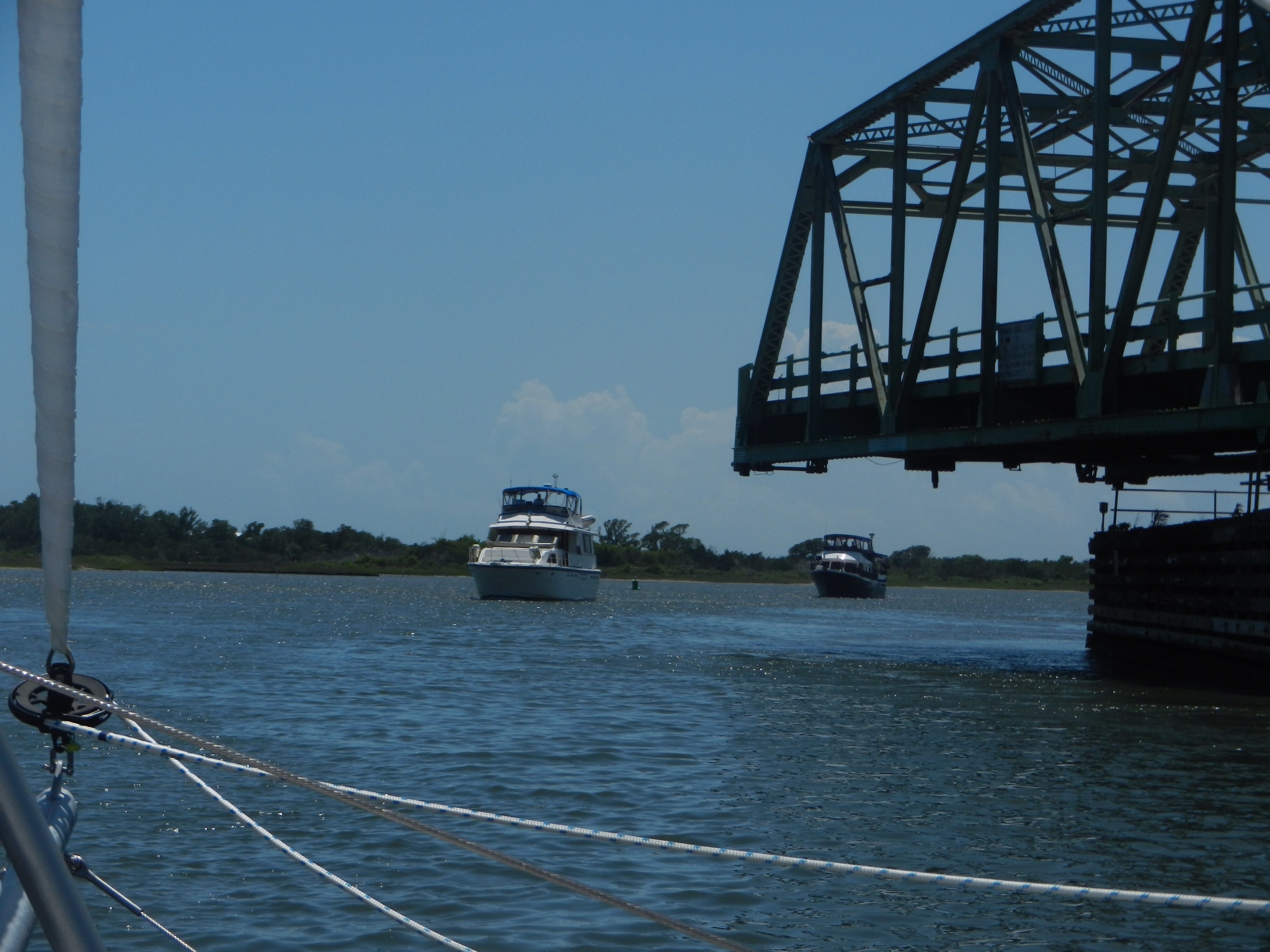 We picked up the pace with our engines hoping to make the 2 p.m. opening of the Surf City Bridge, another swing bridge.