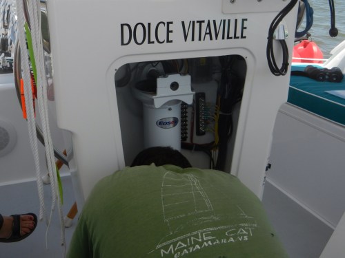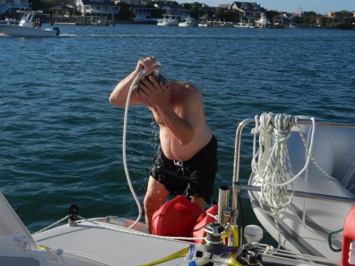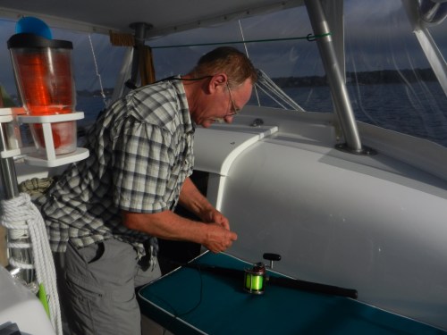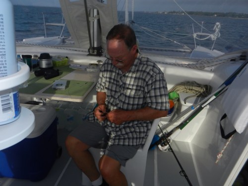 Stephen got Into the water to see if his fishing line had wrapped around the prop. All was okay.