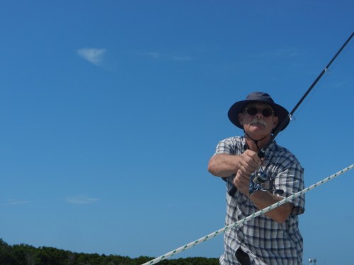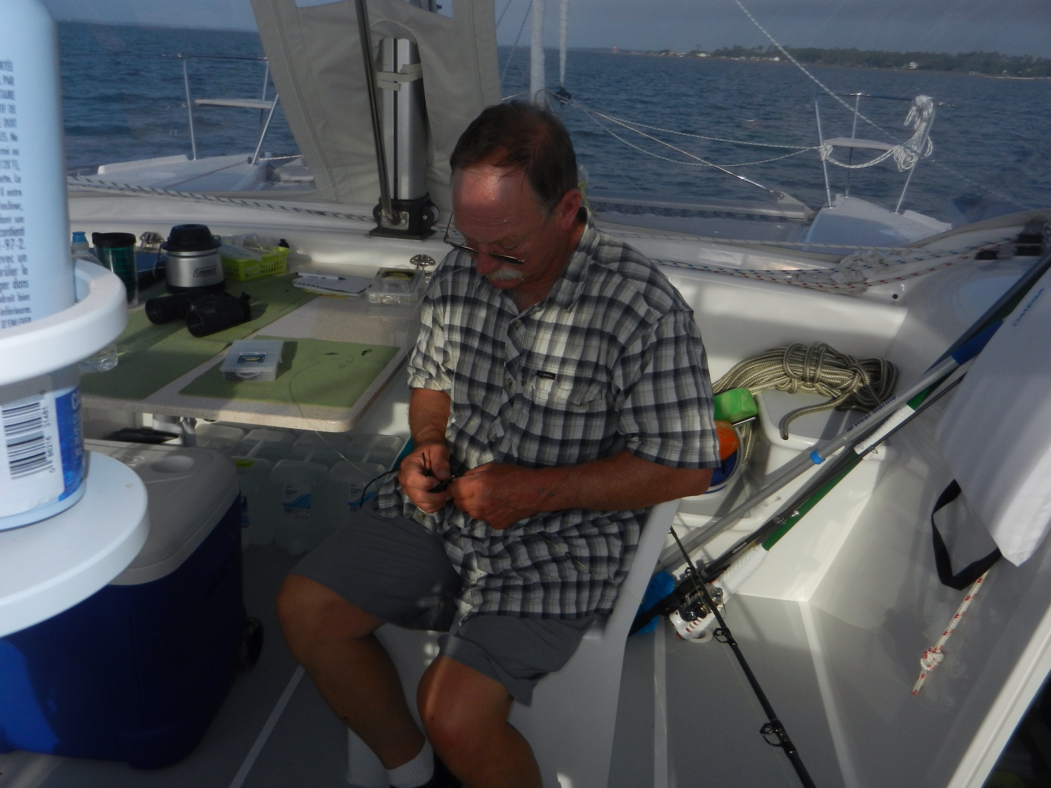 We left Morehead City at 6 a.m. Stephen was excited about trying to catch a fish. He went online and got the appropriate fishing license and had fun putting together this new gear.