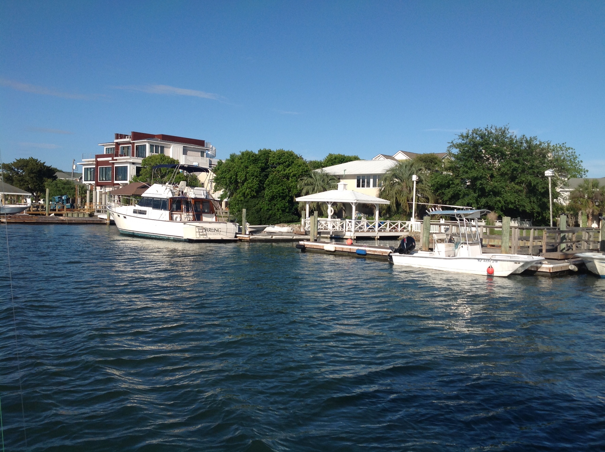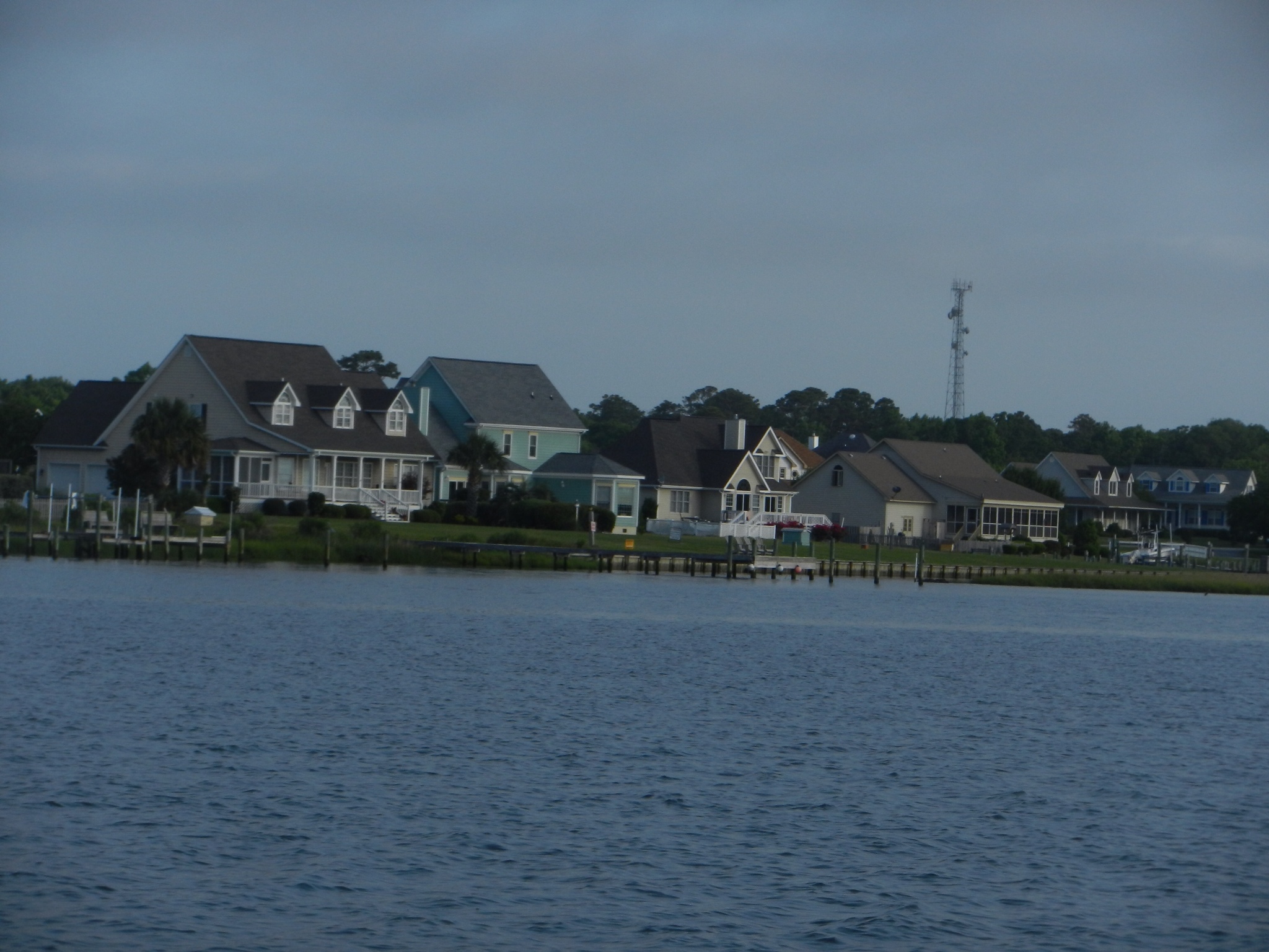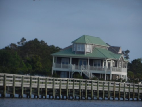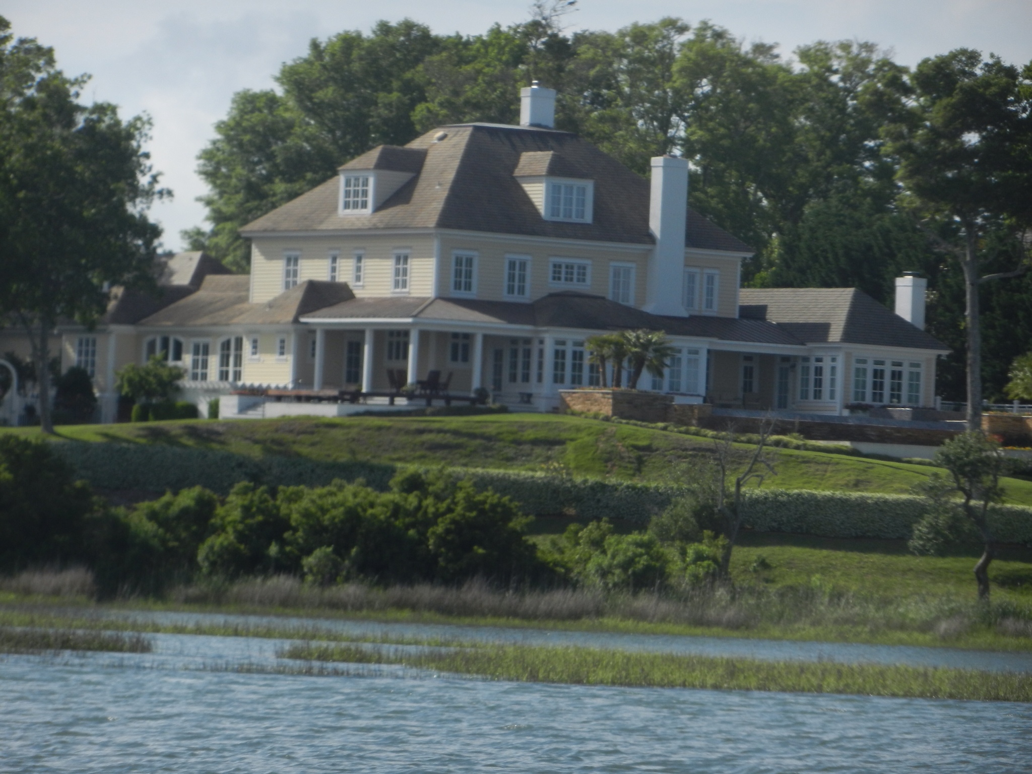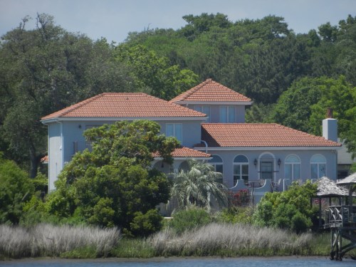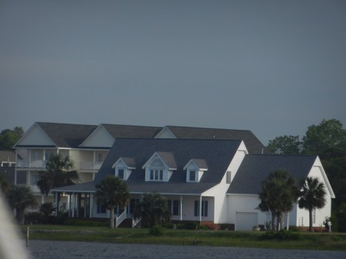 We spent the day traveling south in the ICW right along the coastline. On the mainland side of the ICW were lots of private homes, some of them quite large and with very nice private docks. On the barrier islands side were hotels and condominiums. Many of these homes were vacation homes. It makes one wonder what their real homes look like.