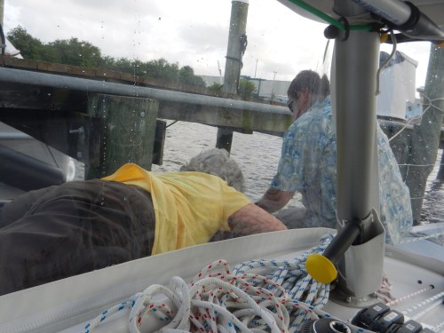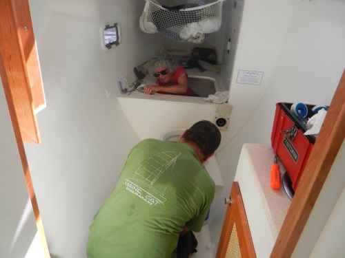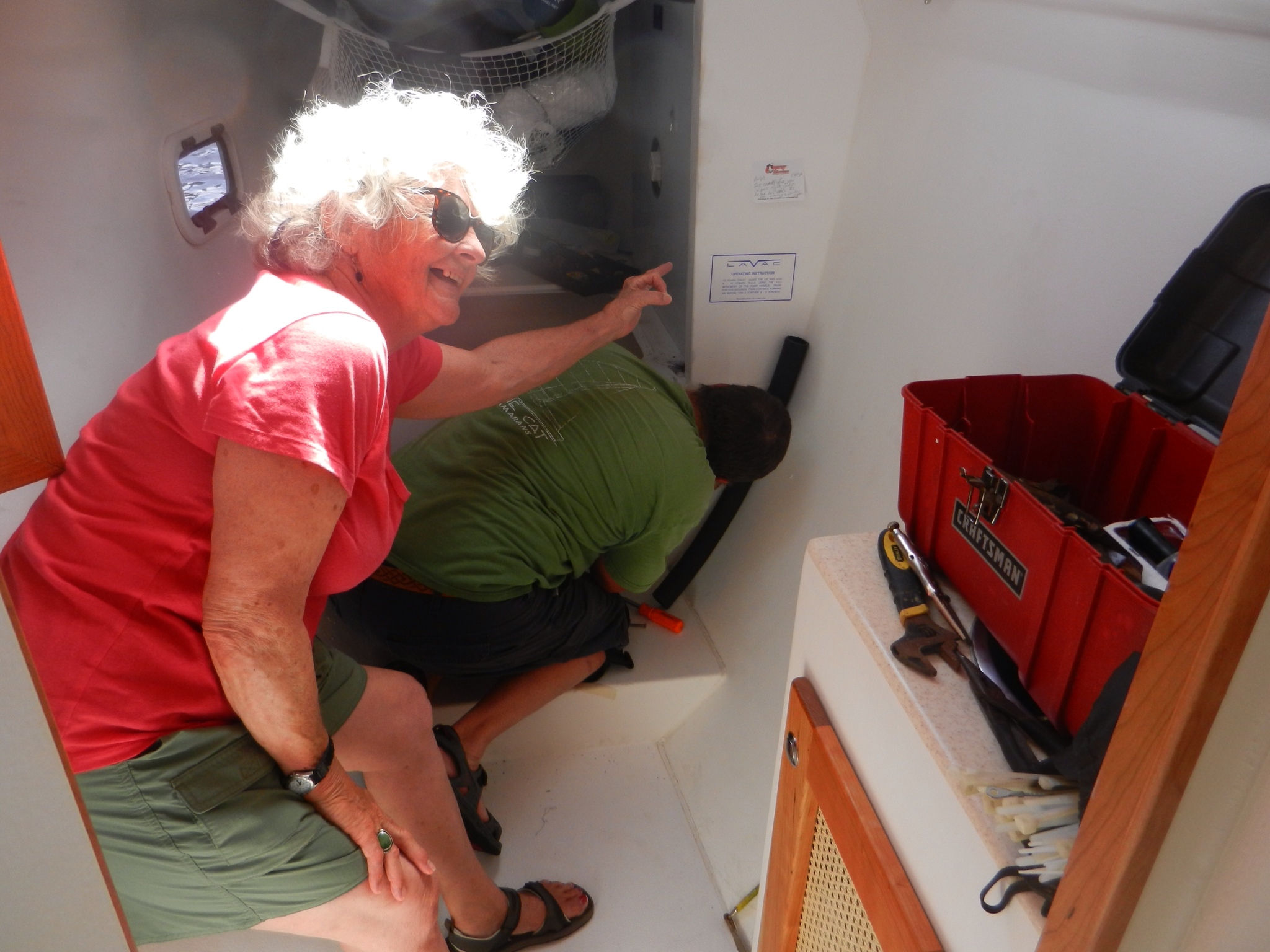 Arlene was his assistant throughout the entire ordeal and she also cleaned the entire boat including the refrigerator and kitchen shelves in preparation for our provisioning trip for the last leg of the journey.