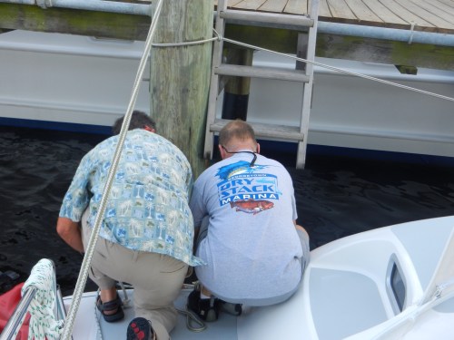 We arrived at Fort Pierce at 6 p.m., a little earlier than anticipated. Docking the boat proved to be a little more challenging than usual because it was a fixed pier, not a floating pier as we are most accustomed to. That means only the boat goes up and down with the tides so it must be secured a little differently.