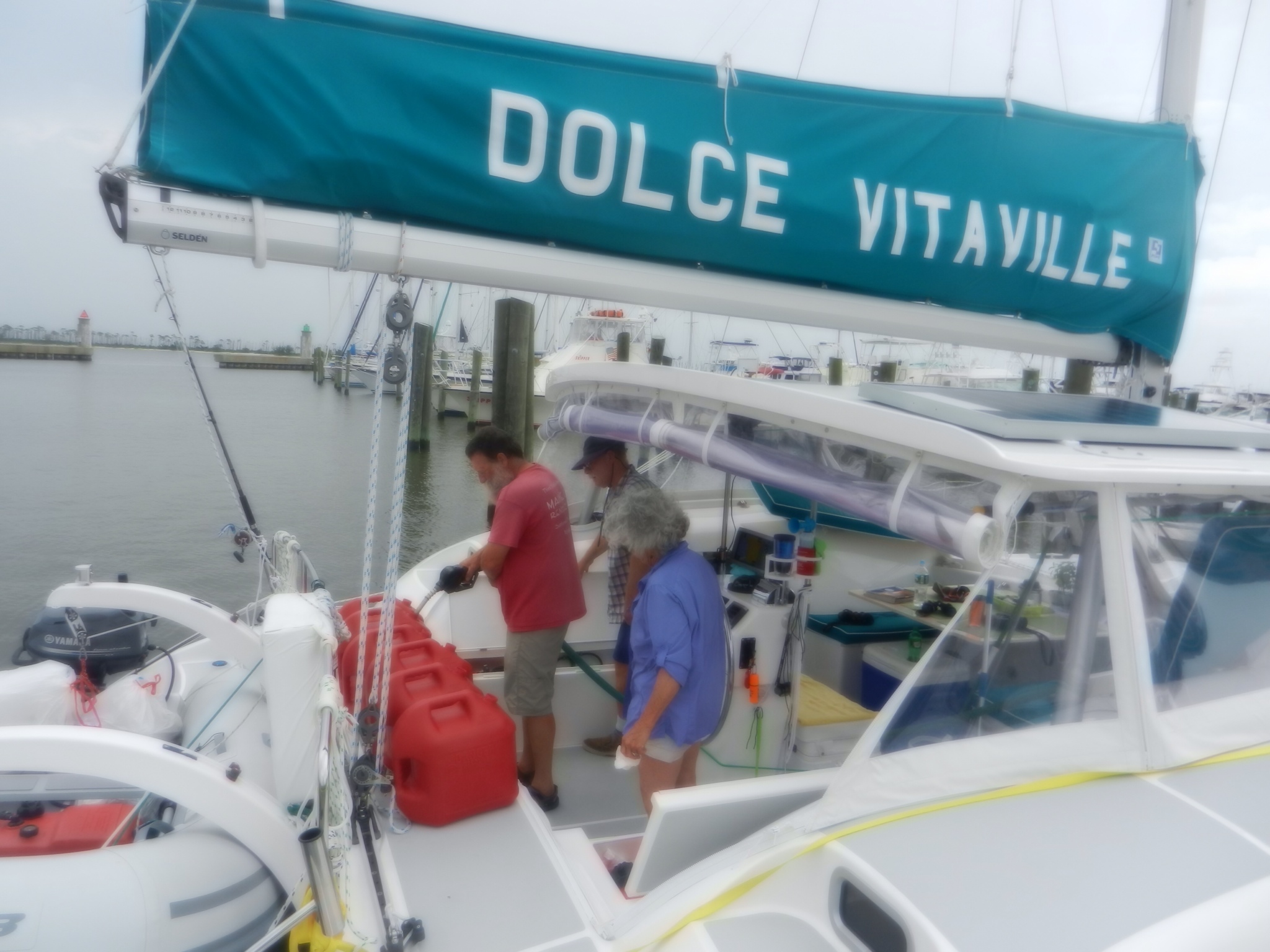 Around 7 a.m. we pulled up the anchor and went in search of the Daulphin Island Marina where we had anticipated getting fuel, water, and ice. We discovered that they were on the other side of a bridge we were too tall to go under. We searched our sources and found that the closest convenient marina with services was in Biloxi, Mississippi. We determined that we still had enough fuel to go the 40 miles to Biloxi so off we went to our new destination.