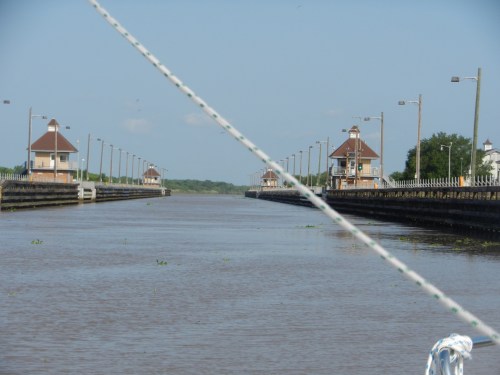 We passed through the Leland Bowman Lock. The gates were open on both sides. No waiting there.