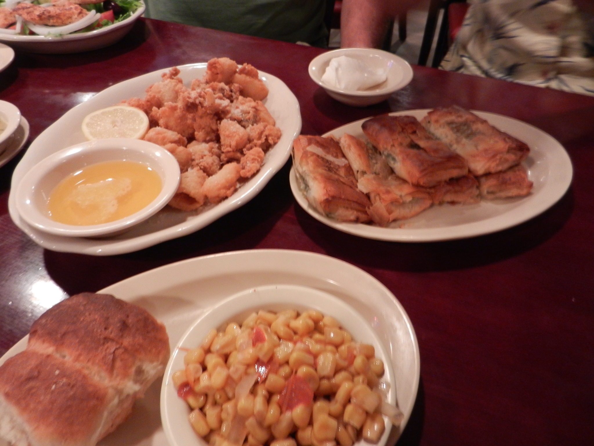 At some point we had to take a break and go seek food. We ate at Skipper's, a Greek restaurant that would become our favorite. We ate every meal there for the next three days except Sunday night when they were closed. After dinner we went back to the boat for more musical fun. Thanks to Steve and Sherry for bringing the instruments and the energy to make this possible. Ralph and Arlene taught us how to toast King Neptune for the successful end to a successful journey. We were pretty much glassy eyed after our all night adventure the day before, but it was a wonderful welcome home occasion. The aloha party had begun.