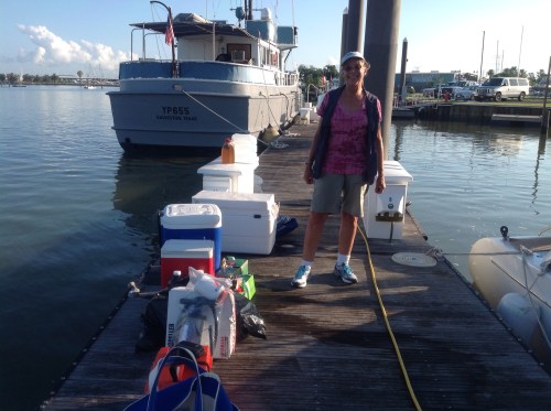 Steve and Sherry tended to our immediate needs. Priority one was to make a trip to the West Marine for an adapter to make our electrical cord work. AC is after all a priority item here in Texas where mosquitos are large and aggressive. Priority two was a trip to the liquor store for adult beverages. After that we were ready to go back to the boat, take showers, settle in and party for awhile.