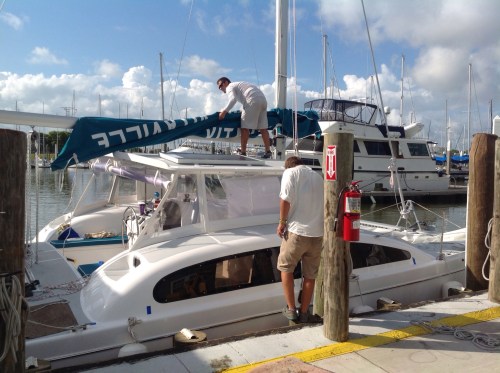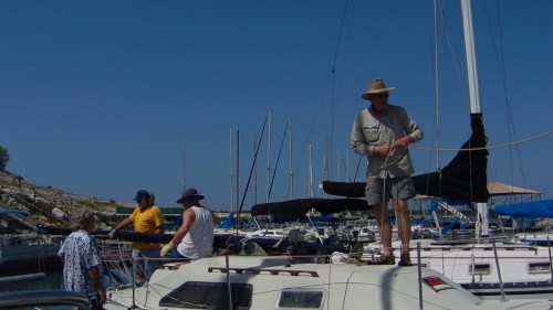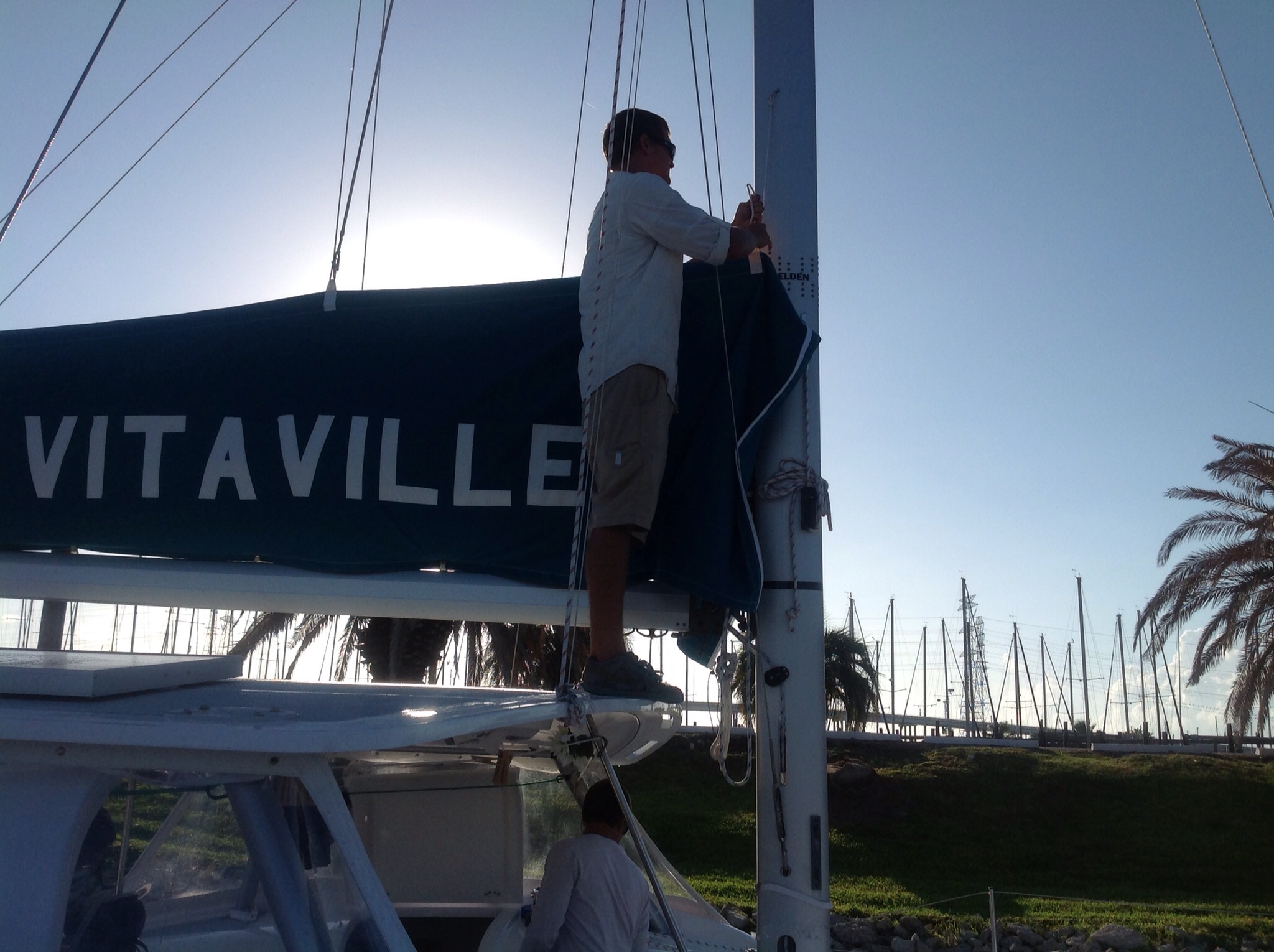 Monday we worked hard washing the boat and doing last minute things. Ralph installed another set of holders for the second boat hook. He also briefed us as best he could on things we will be needing to do for Dolce Vitaville. We have much to learn about properly maintaining our new water home. Arlene, Franci and Stephen washed the boat inside and out. It was a high energy day and everyone did as much as they could.