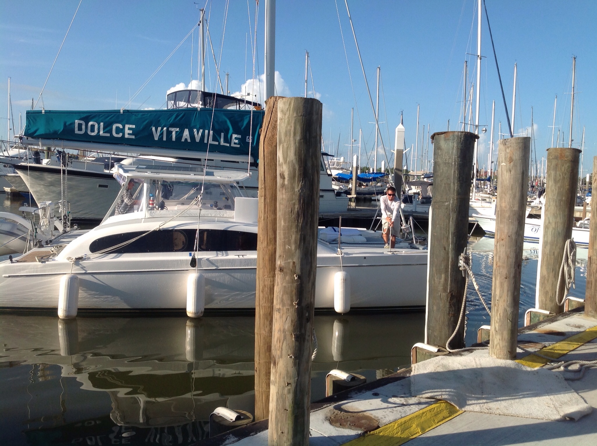 We arrived at Seabrook Marina at 2 p.m. Our friends Steve and Sherry were waiting for us on the dock. Steve had been up at 4:30 a.m. tracking our progress and was the first to notice when the SPOT went off between 4:45 and 6:00 a.m. Apparently it needs to be reset every 24 hours. We had traveled through the night and Ralph did not remember to reset it until 6 a.m. They even noticed when our speed picked up to 10 knots later in the morning and began to move quicker themselves. Also at the dock was Dean, the harbor master at Seabrook Marina, showing us to the dock space that may be the home for Dolce Vitaville for the next month.
