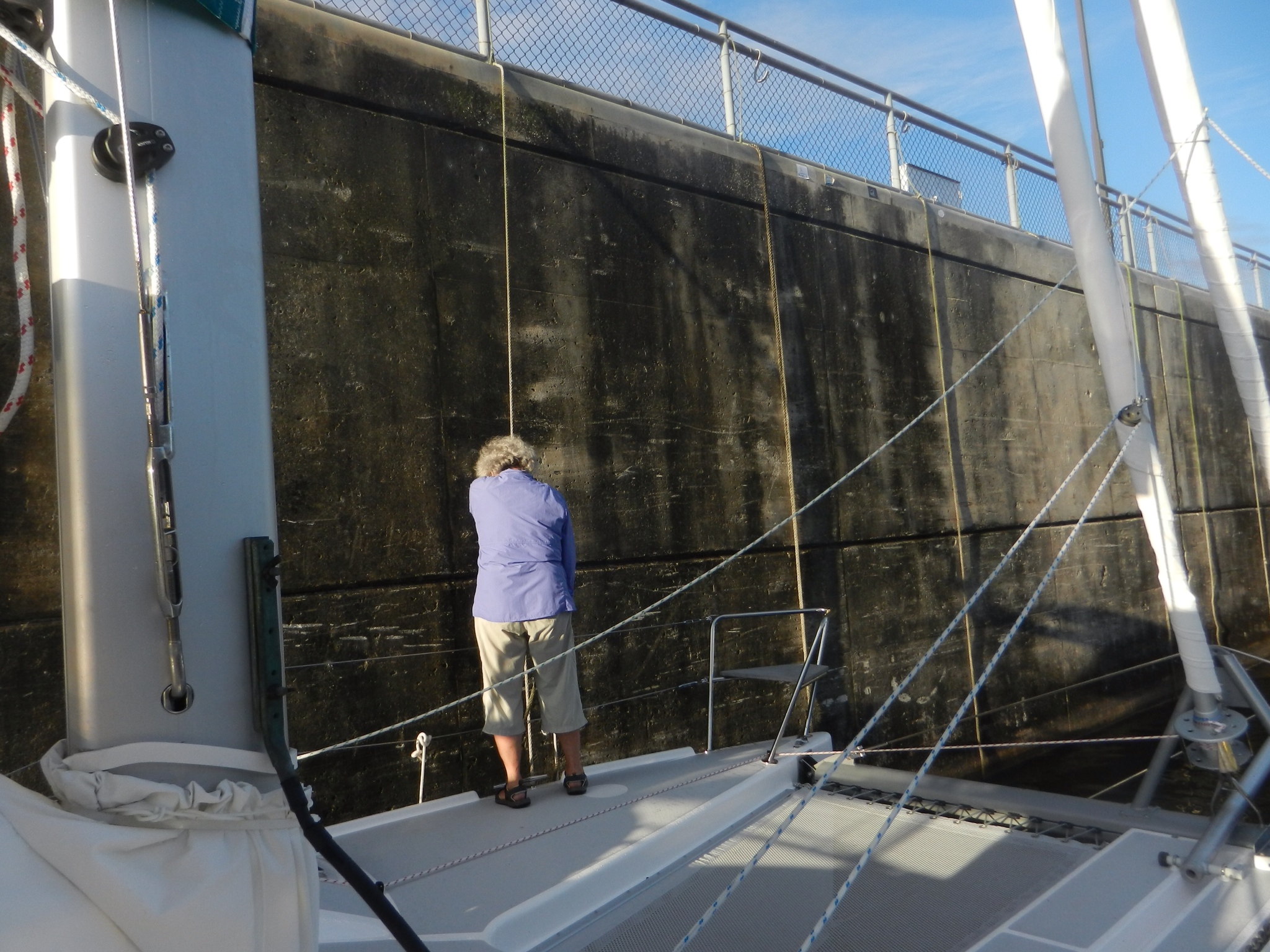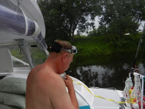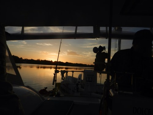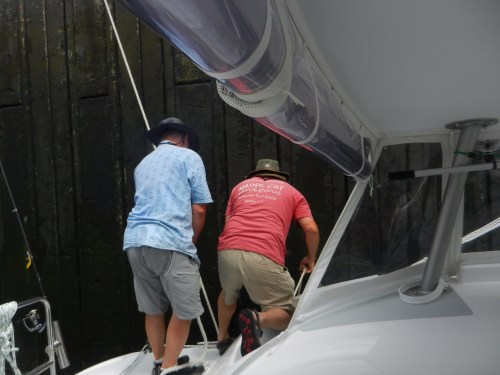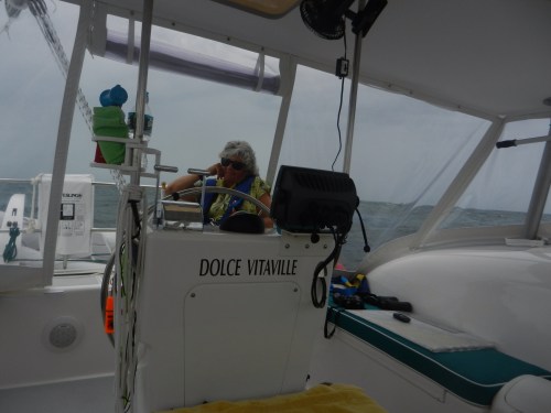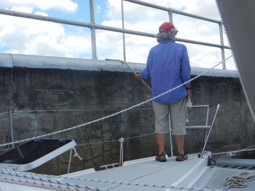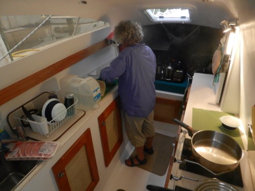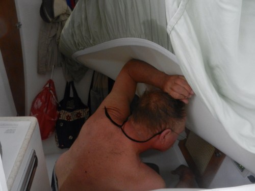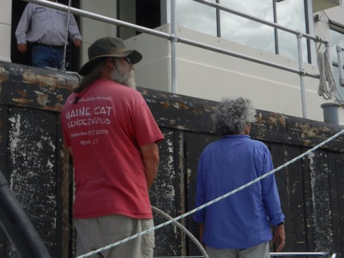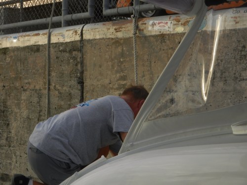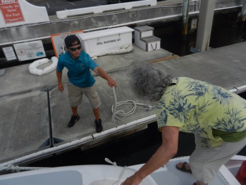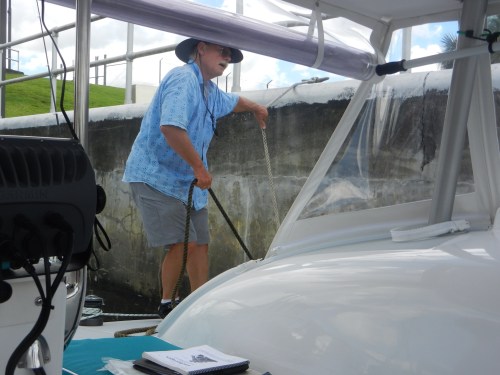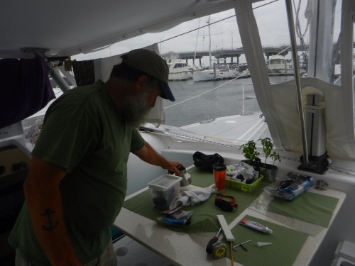 Stephen and Ralph spent several hours installing new handy things on the boat…….new winch handle holders for the back of the boat to use with the screecher, hardware to hang boat hooks, brooms and mops, etc. We are still waiting on the delivery of parts needed to get the shore powered AC going. Stephen made the on demand hot water heater work by turning it on. Well, sort of. We suspect this is the first time we have actually had fully 30 amp shore power and that may have made the difference.