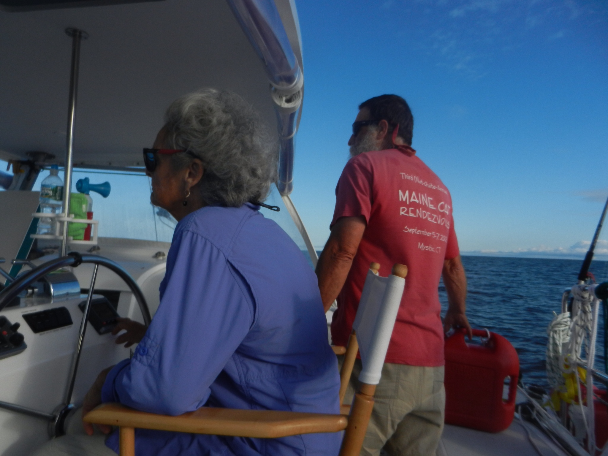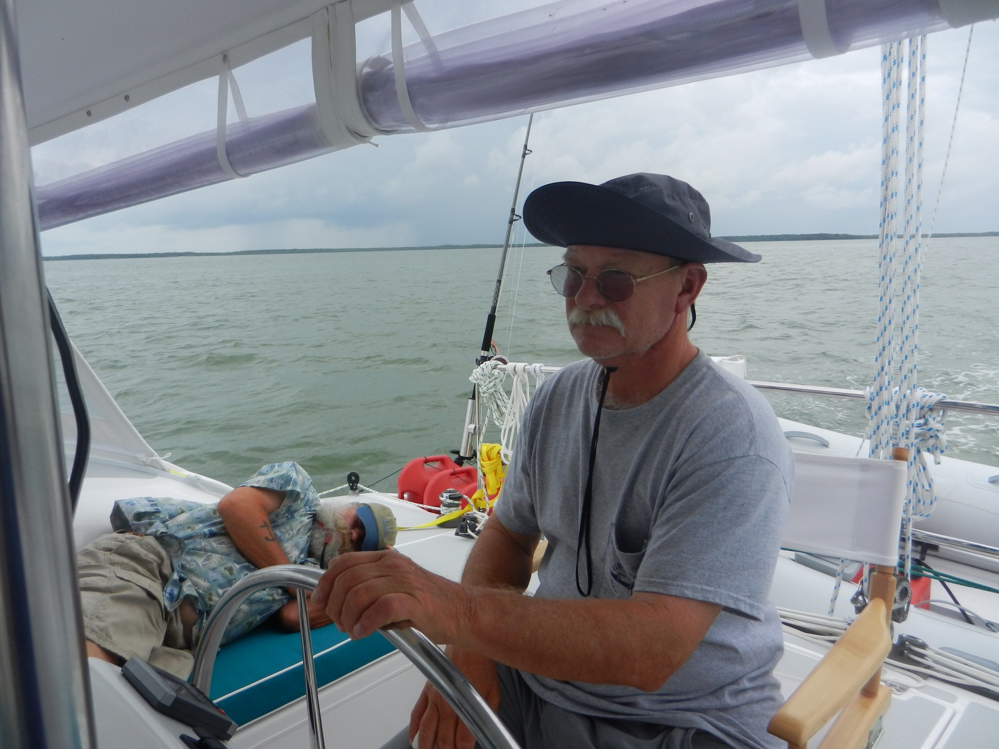 Stephen and Ralph have on their matching aloha shirts that we bought on sale at the Boat, Bath, and Beyond West Marine today.