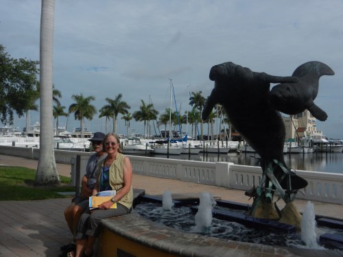 It has taken days to learn how to spell the name of the town where we are currently hanging out but we believe we finally have it correct – Bradenton. Bradenton is just across a bay from Tampa on the west coast of Florida. It's on the Manatee River and everything here is about manatees. It's in Manatee County. There is a statue of a mother manatee and her baby along with a fountain on the sidewalk in front of our marina, the Twin Dolphin Marina. Capt. Ralph says they are the “founding” Manatees and swam along side the Mayflower.
