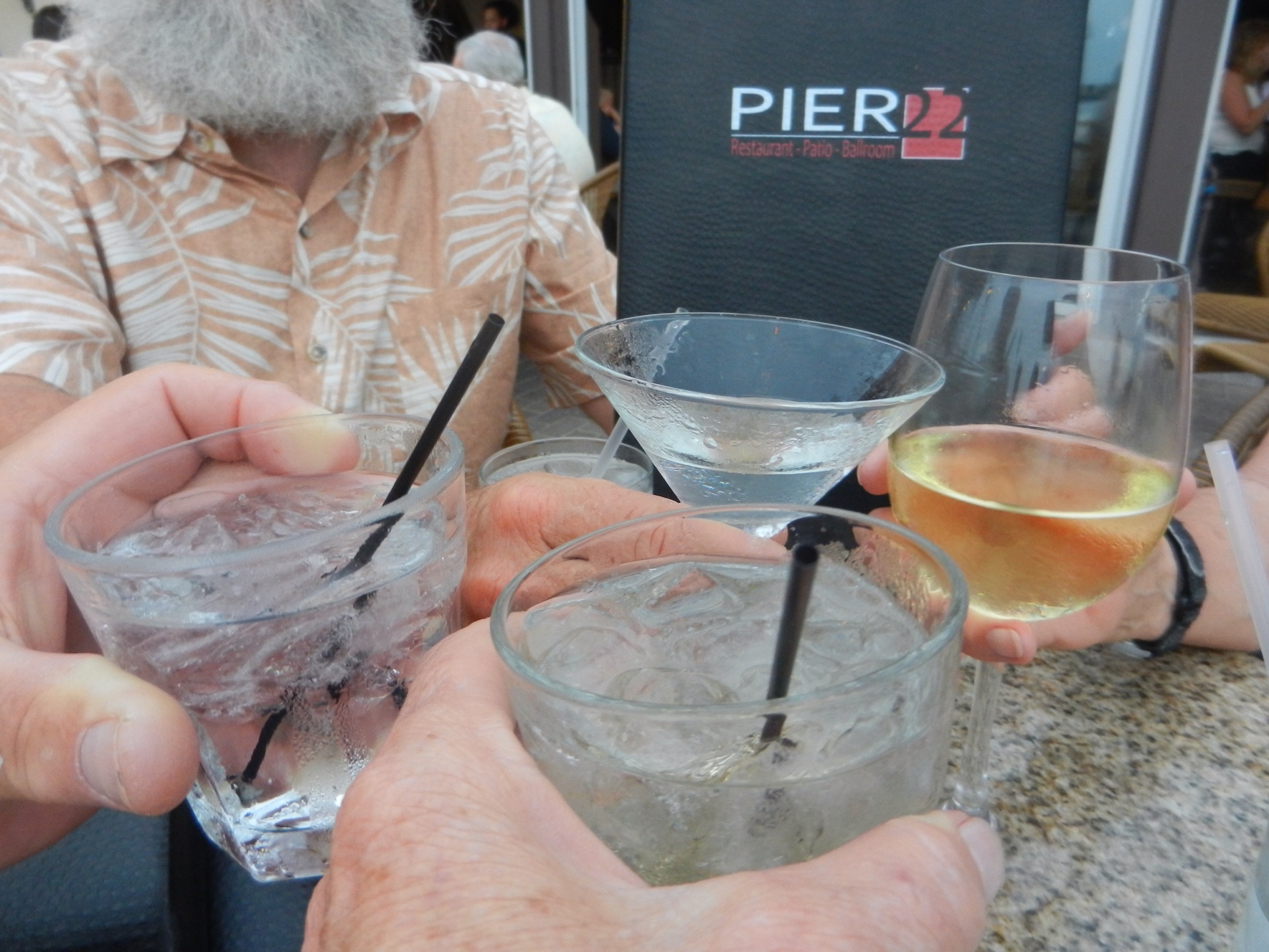 We often have happy hour on the boat followed by a home cooked meal. Sometimes we go to one of the local restaurants. Last night we went to Pier 22, the restaurant associated with our marina. We put it on the level with the Marriott Marquis in New York. The food was gourmet and delicious and the drinks were great.